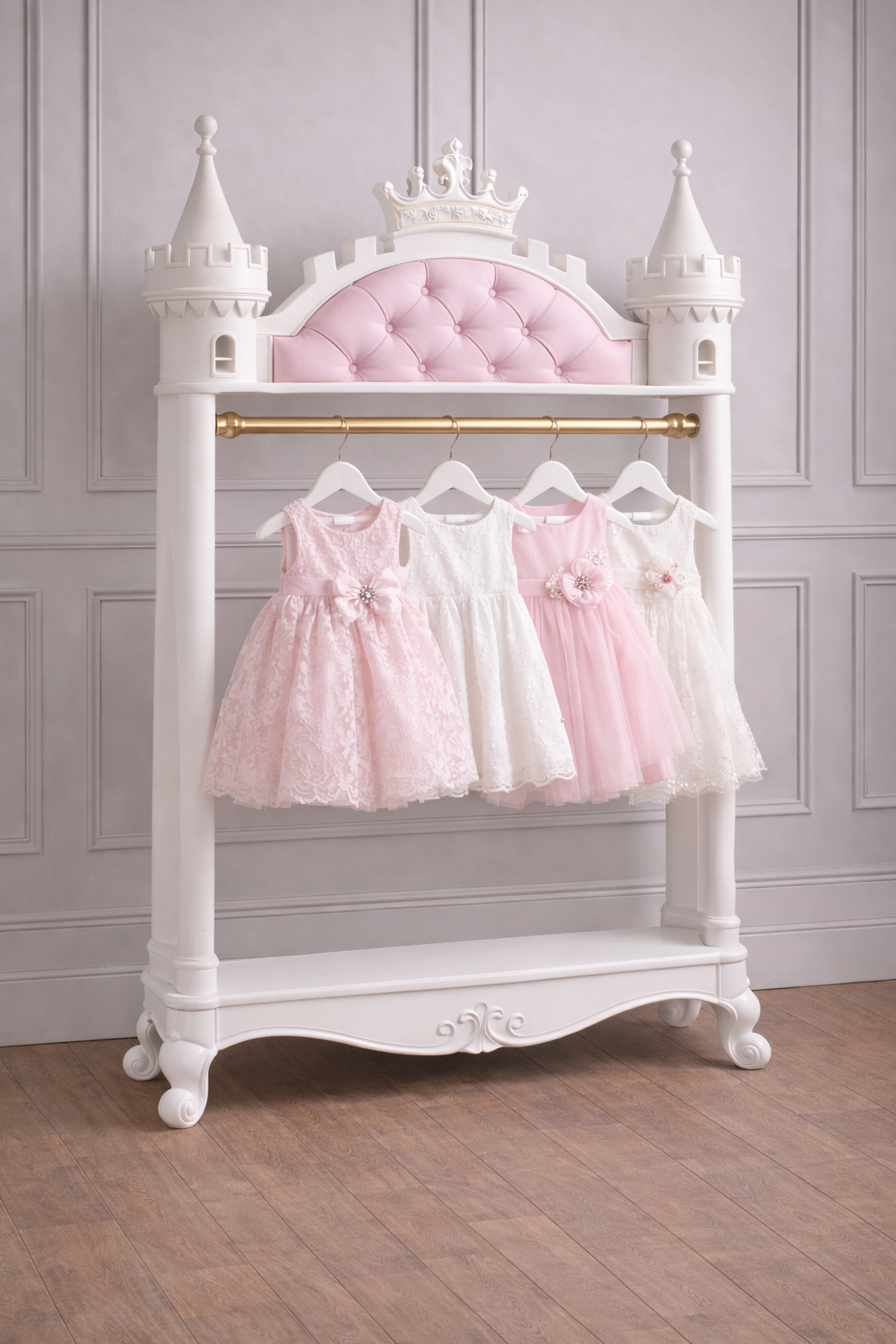 Perfect for showcasing special occasion dresses, heirloom garments, or beautifully coordinated outfits, The Château Clothes Rail transforms everyday organisation into a styled statement. The open design keeps essentials within easy reach while maintaining an airy, sophisticated aesthetic.