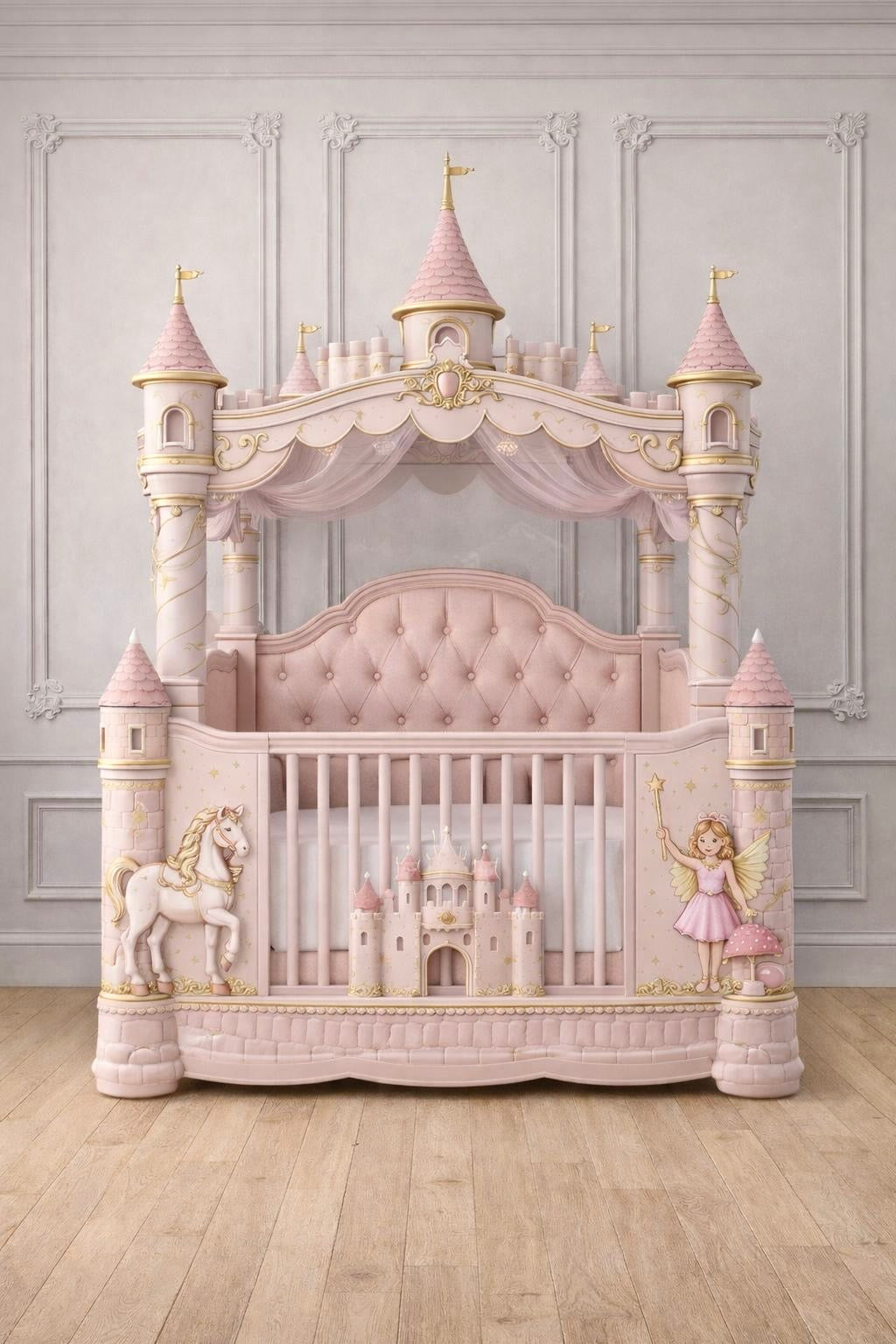 Inspired by enchanted castles and childhood wonder, this collection transforms the nursery into a magical sanctuary. From sculpted turrets and flowing canopies to whimsical characters and heirloom-quality upholstery, every element is thoughtfully designed to evoke romance, elegance, and nostalgia.