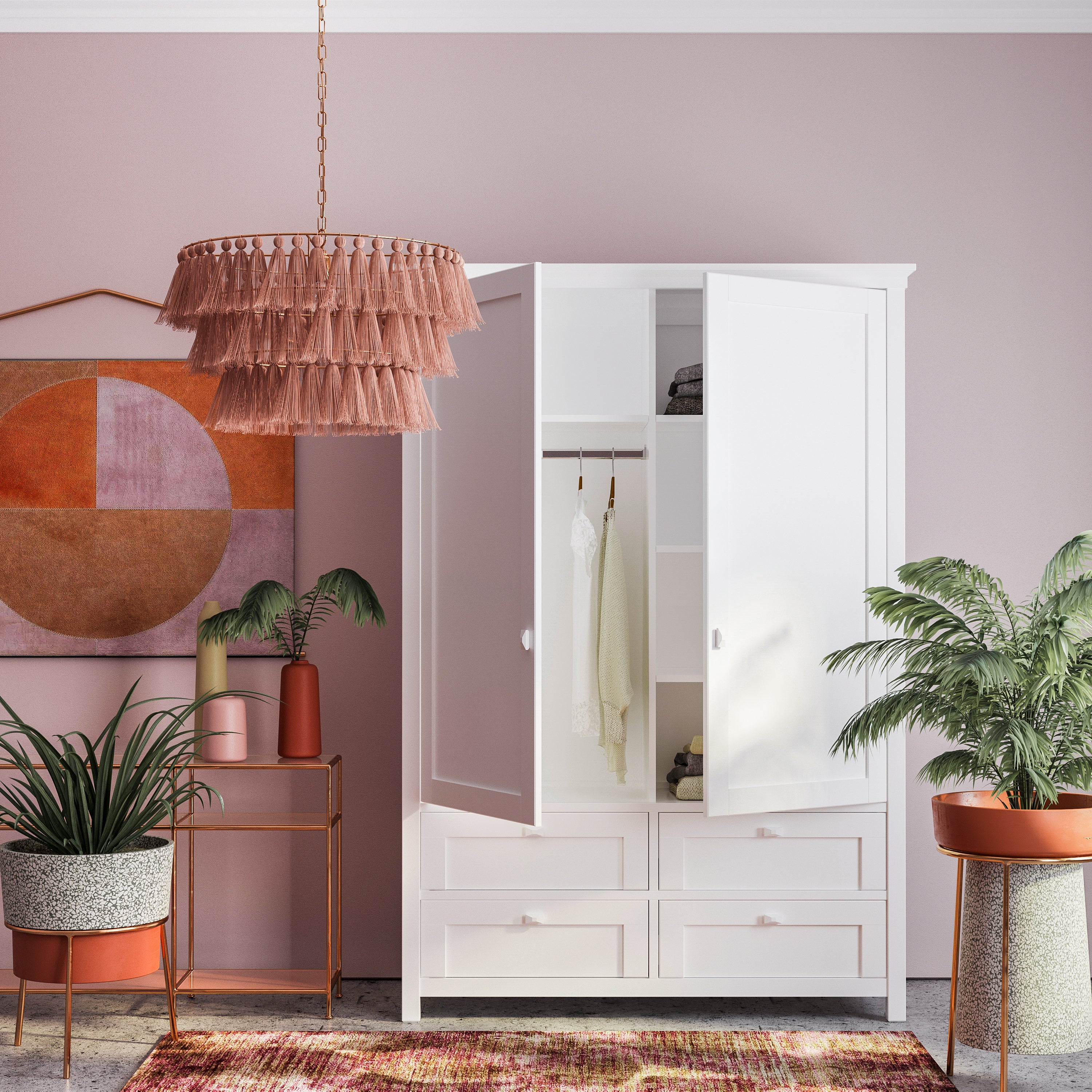 Transform your nursery into a sophisticated furniture studio with the stunning Karisma Armoire. This luxury armoire combines exquisite design with practical functionality, offering an elegant solution for all your storage needs. Featuring two spacious drawers, an adjustable shelf behind the doors, and a hanging rod, this piece is perfect for organising baby essentials.