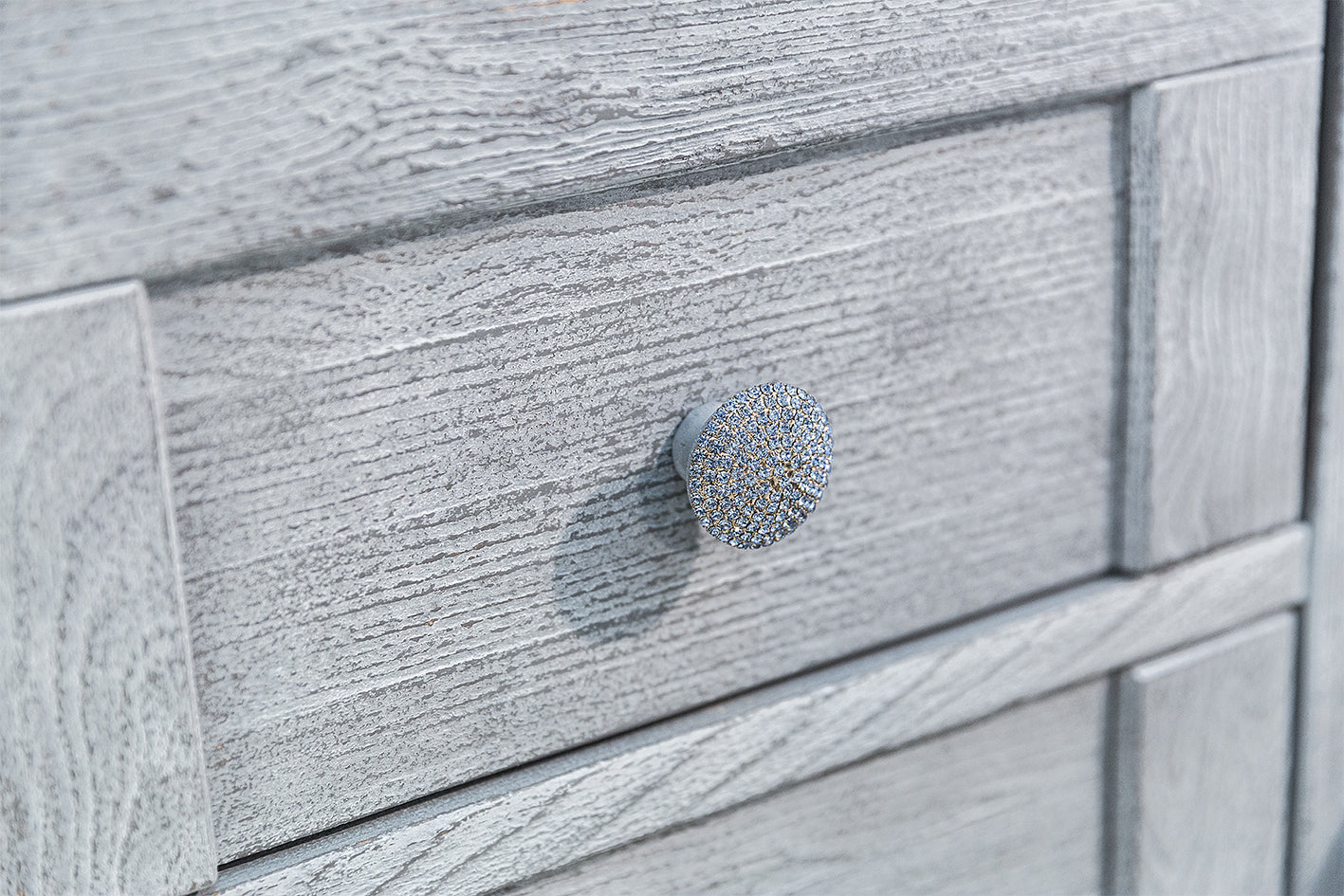 Crafted with care, the Karisma Double Dresser is equipped with wooden diamond-shaped handles and offers timeless elegance, or you can upgrade to the stunning encrusted dome knobs in silver, pink or blue. Whether you're organising baby essentials or growing your child’s wardrobe, this dresser is a versatile and durable solution for your home.