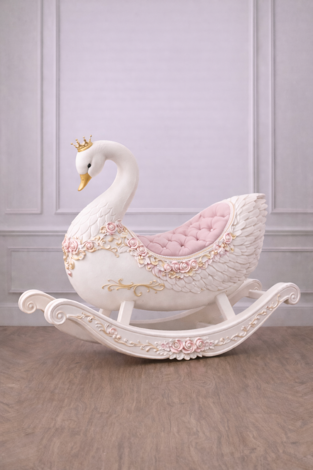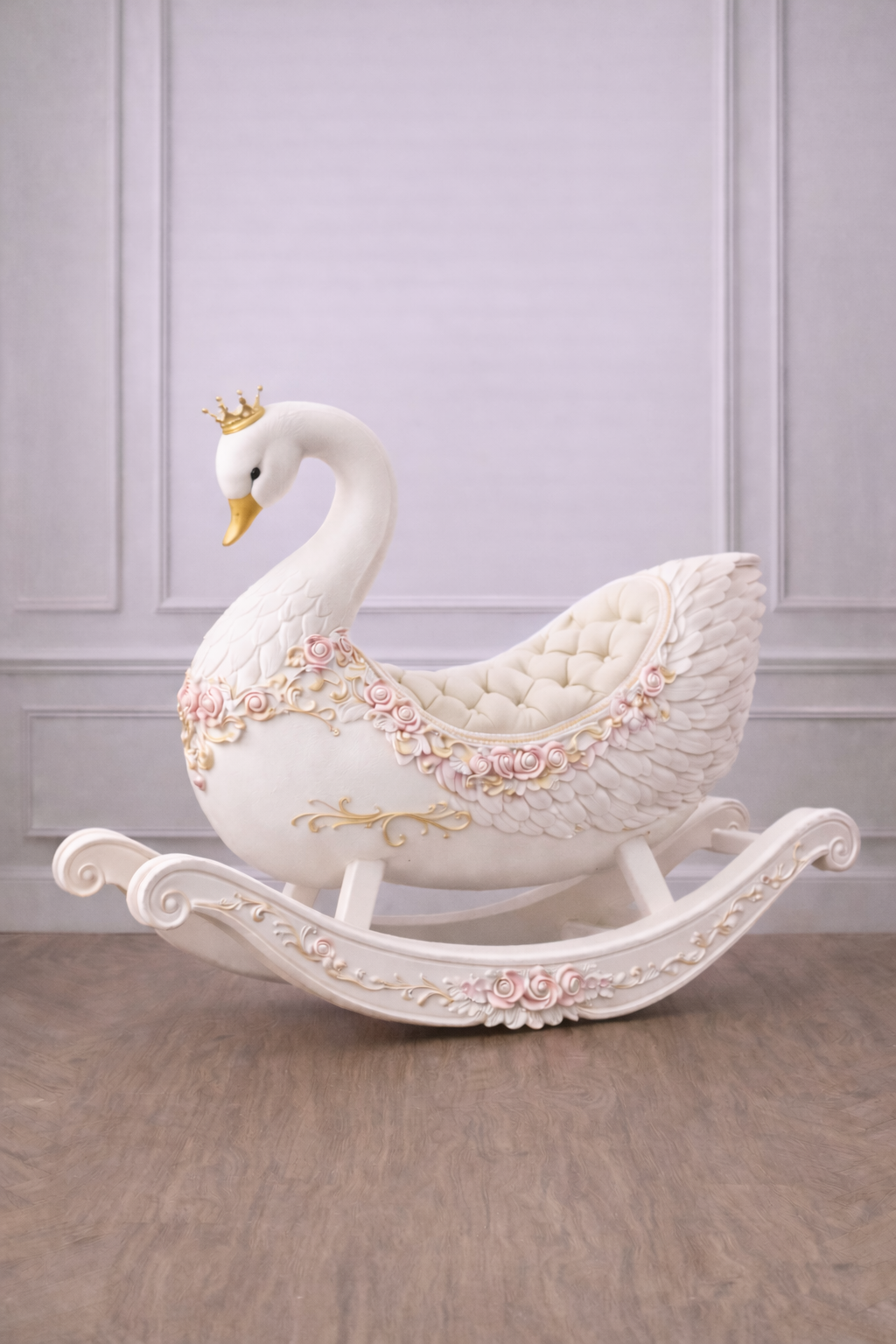 Graceful and enchanting, the Swan Lake Rocking Cradle is a poetic expression of timeless elegance and gentle comfort. Inspired by the beauty of the swan, this exquisite cradle features delicately sculpted wings, flowing curves, and refined detailing, creating a serene and magical resting place for your baby.